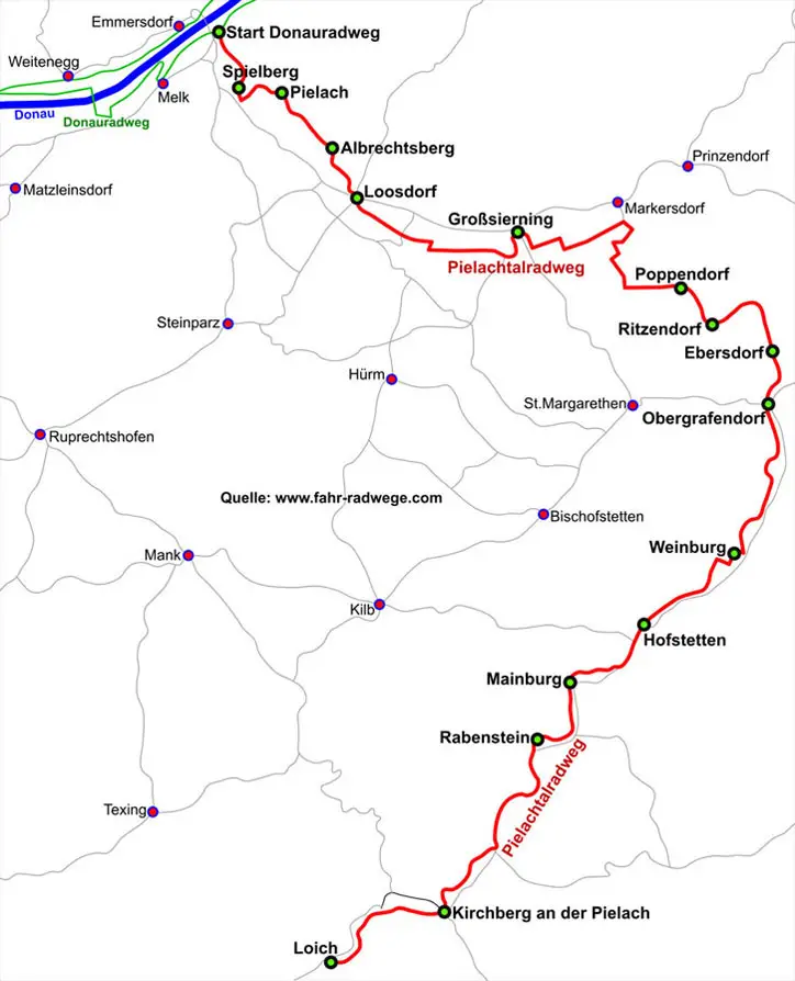 Der Pielachtalradweg beginnt unter der Melker Donaubrücke direkt am Donauradweg,