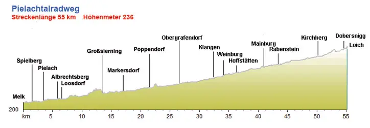 Ab Ober-Grafendorf schlängelt sich der Radweg meistens entlang der Pielach bis zum Ziel am Bahnhof Loich, auch bestens geeignet für Familien mit Kindern.