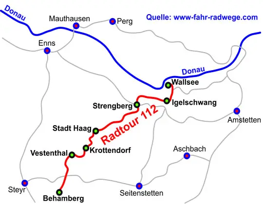 Schöne aber anspruchsvolle Radtour von der Donau in Wallsee bis nach Behamberg der westlichsten Gemeinde Niederösterreichs mit seiner herrlichen Aussicht bis nach Steyr.