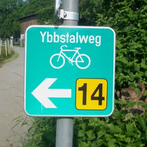 Beschilderung der Strecke: Durch die Ortschaften ist der Radweg teilweise schlecht beschildert.